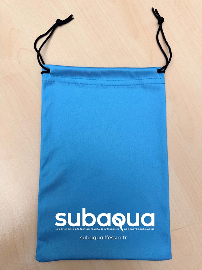 Housse microfibre de belle qualité pour la protection de votre masque de plongée et permet de nettoyer la surface transparente pour une meilleure visibilité. D’une double utilité, l’étui microfibre vous permet de prendre soin et de nettoyer vos écrans, verres de masque de plongée ou instruments, tout en les protégeant des rayures et des poussières.Serrage par cordon.