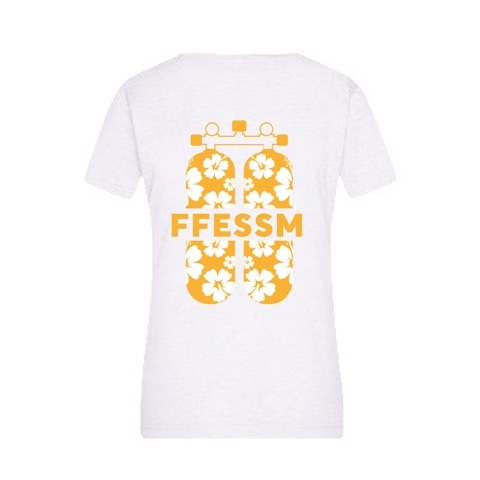 Tee-shirt blanc avec bloc bouteille de plongée orange au dos du tee-shirt